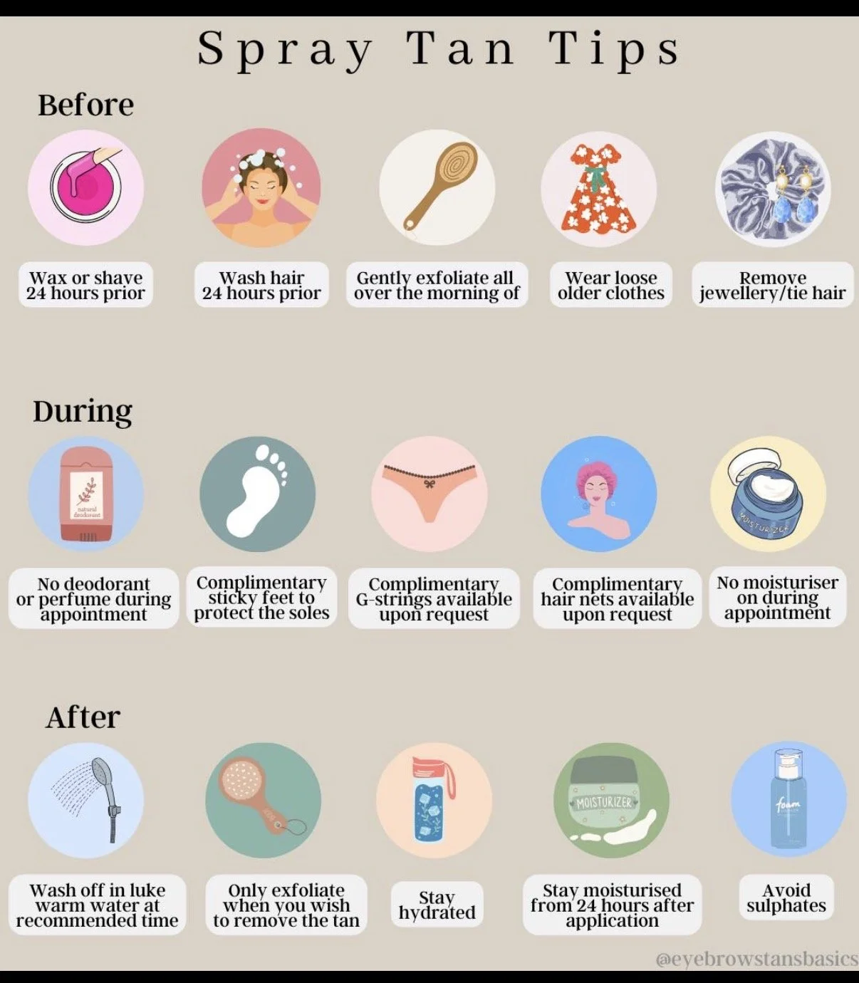 Once you decide your desired color your spray tan artist will let you know how long you will need to process before taking your shower. ** travel fee for anything over 30 minute drive